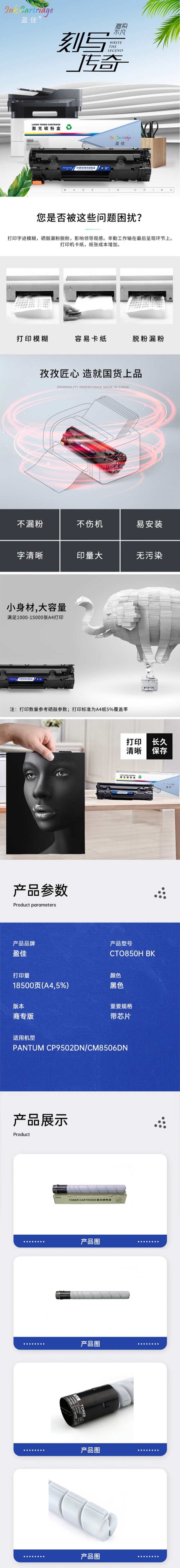 盈佳(Ink Cartridge) CTO850HBK 粉盒 带芯片 商专版 18500页 (单位:支) 适用PANTUM CP9502DN/CM8506DN 黑色