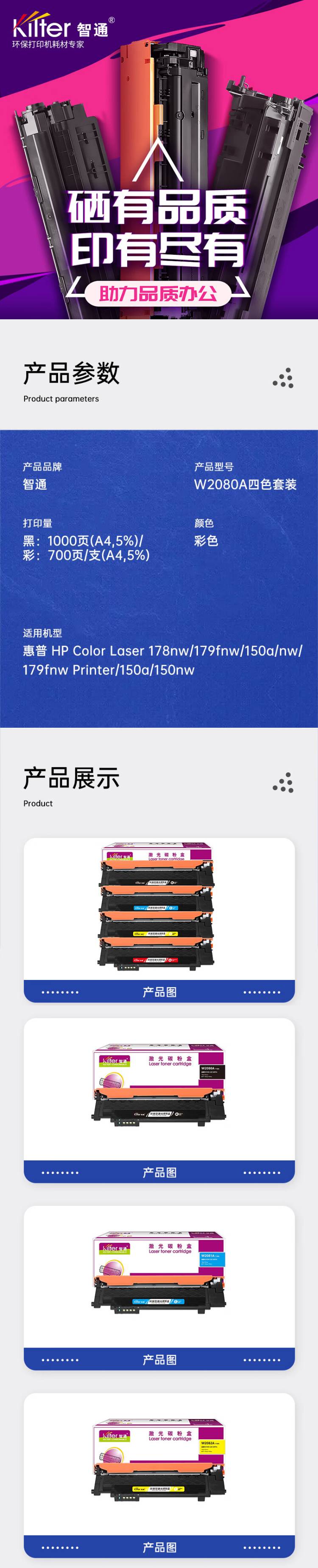 W2080A 硒鼓四色套装 带芯片 黑:1000页 彩:700页 (单位:支) 适用惠普178nw 179fnw 彩色