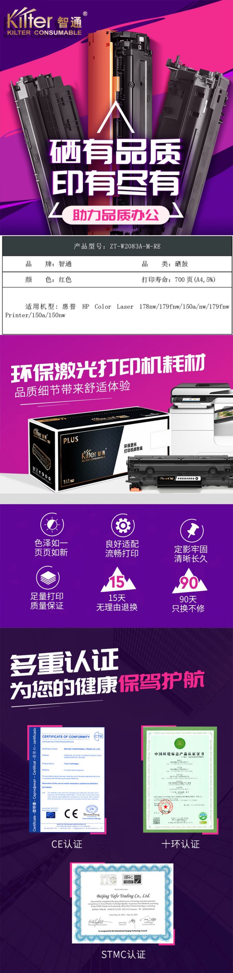 智通(ZT) W2083A(118A) 硒鼓 PLUS系列 700页 (单位:个) 适用于惠普HPColorLaser178nw/179fnw/150a/nw/179fnwPrinter/150nw 红色