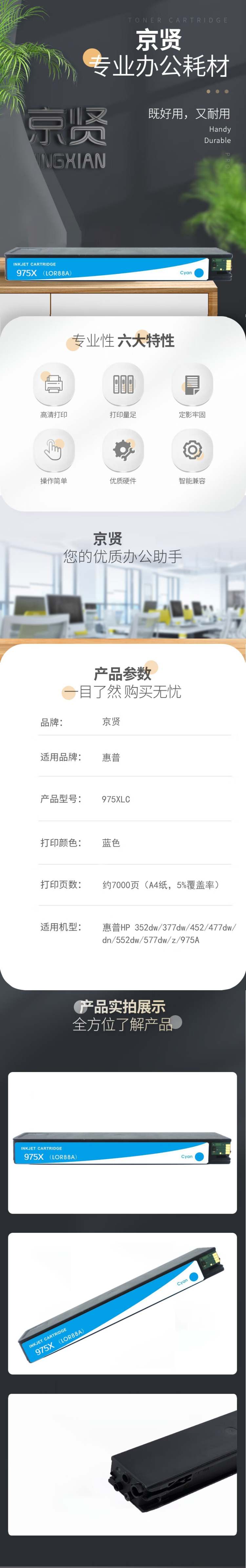 975XLC 墨盒 7000页 (单位:支) 适用HP 352dw 377dw 452 477dw/dn 552dw 577dw/z 975A 蓝色