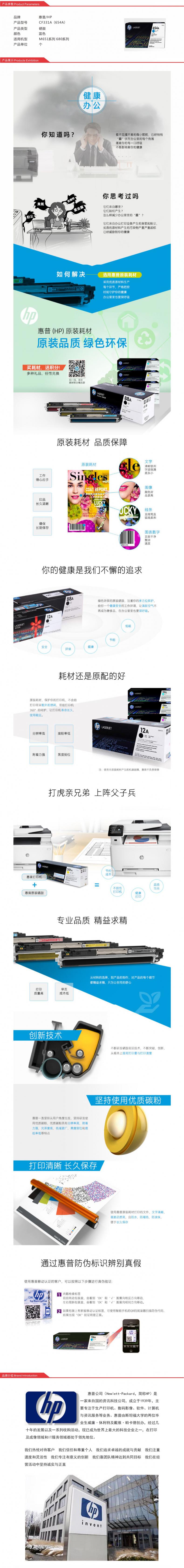 惠普(HP) CF331A(654A) 打印机硒鼓 15000页 (单位:支) 适用机型 M651系列 680系列 蓝色