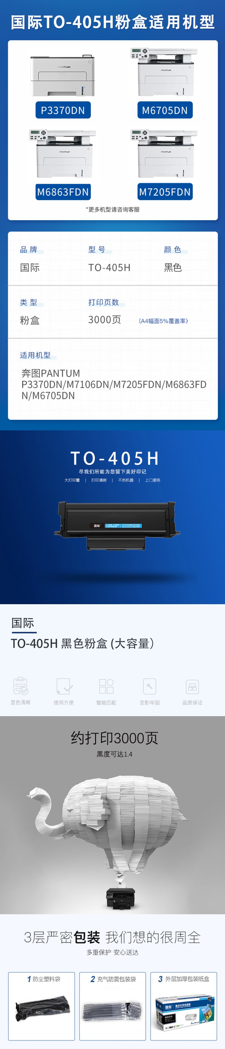 国际 TO-405H 大容量粉盒 带芯片 3000页 (单位:只) 适用奔图P3370DN M7106DN M7205FDN M6863FDN M6705DN 黑色