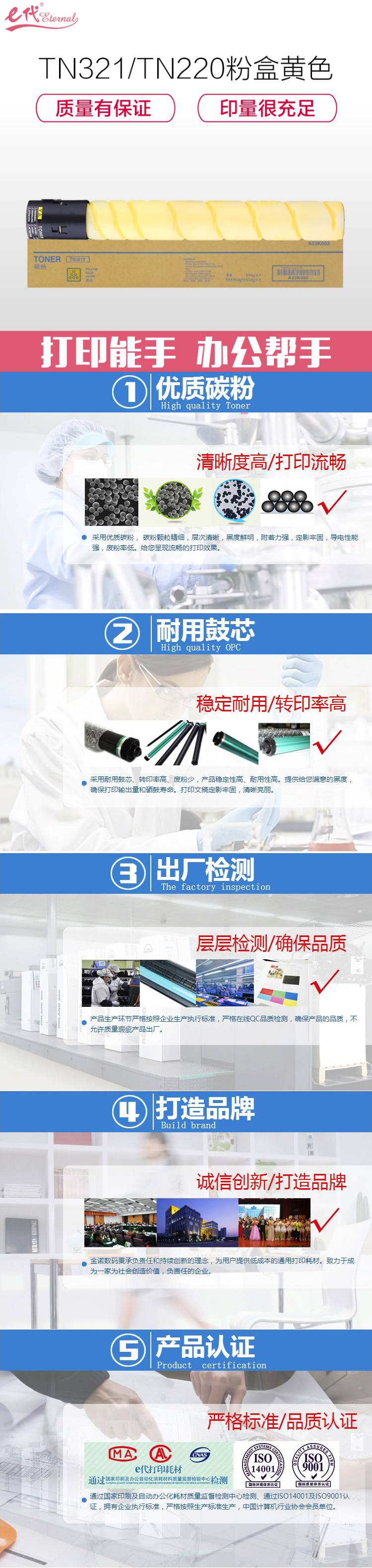 TN321/TN220/TN221 粉盒 25000页 (单位:支) 适用柯美C364;C284;C224;C7822;C7828;C221 C281 黄色