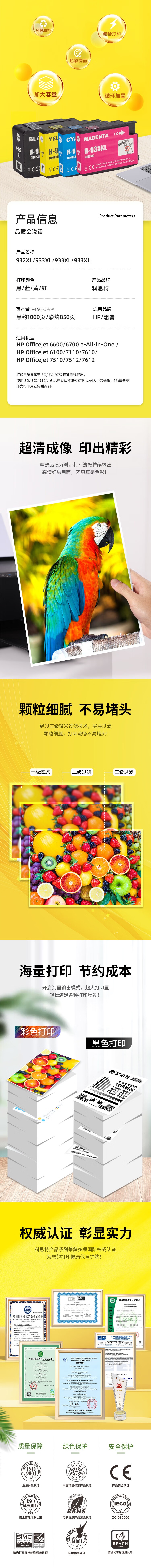 科思特(KST) H-933XL 大容量墨盒 850页 (单位:个) 适用惠普 933 6100 6600 6700 青色
