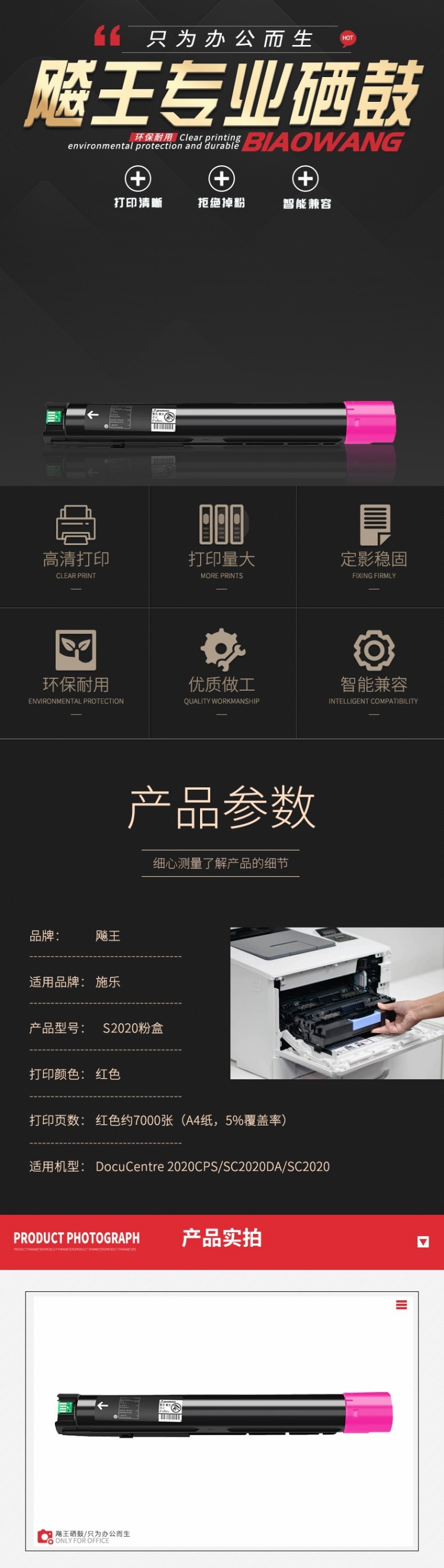 飚王 S2020 粉盒 7000页 (单位:支) 适用富士施乐DocuCentre/SC2020/2020CPS 红色