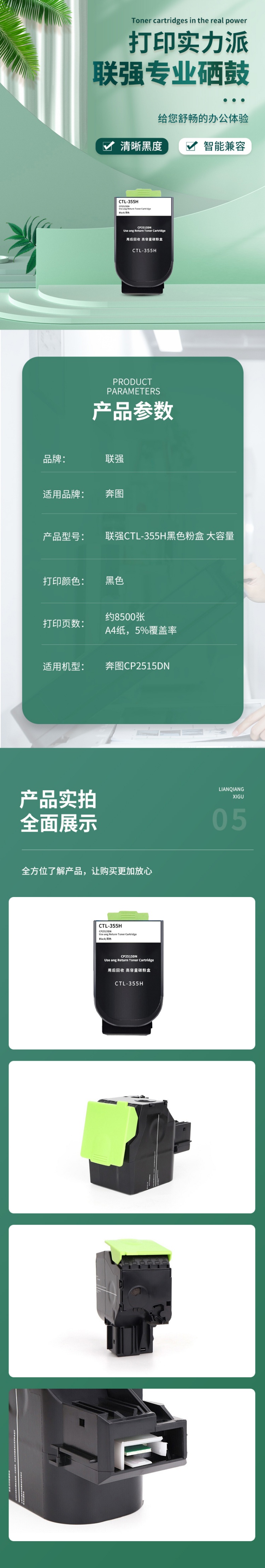 联强 CTL-355H 粉盒 大容量 8500页 (单位:支) 适用奔图CP2515DN 黑色