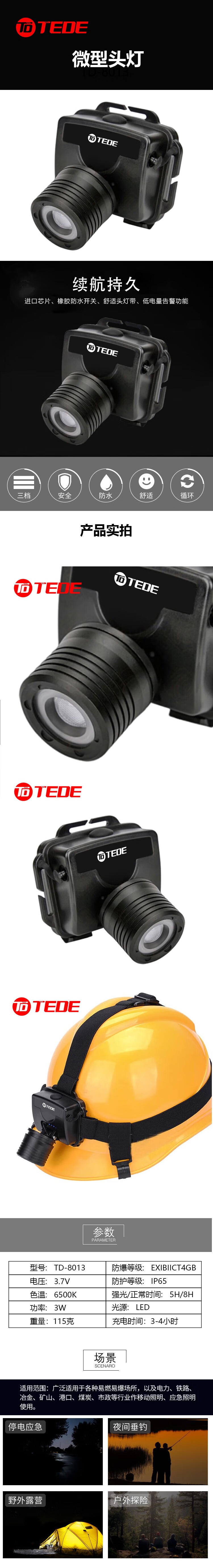 商品名称 tede td-8013可调节微型防爆头灯 3w黑色(单位