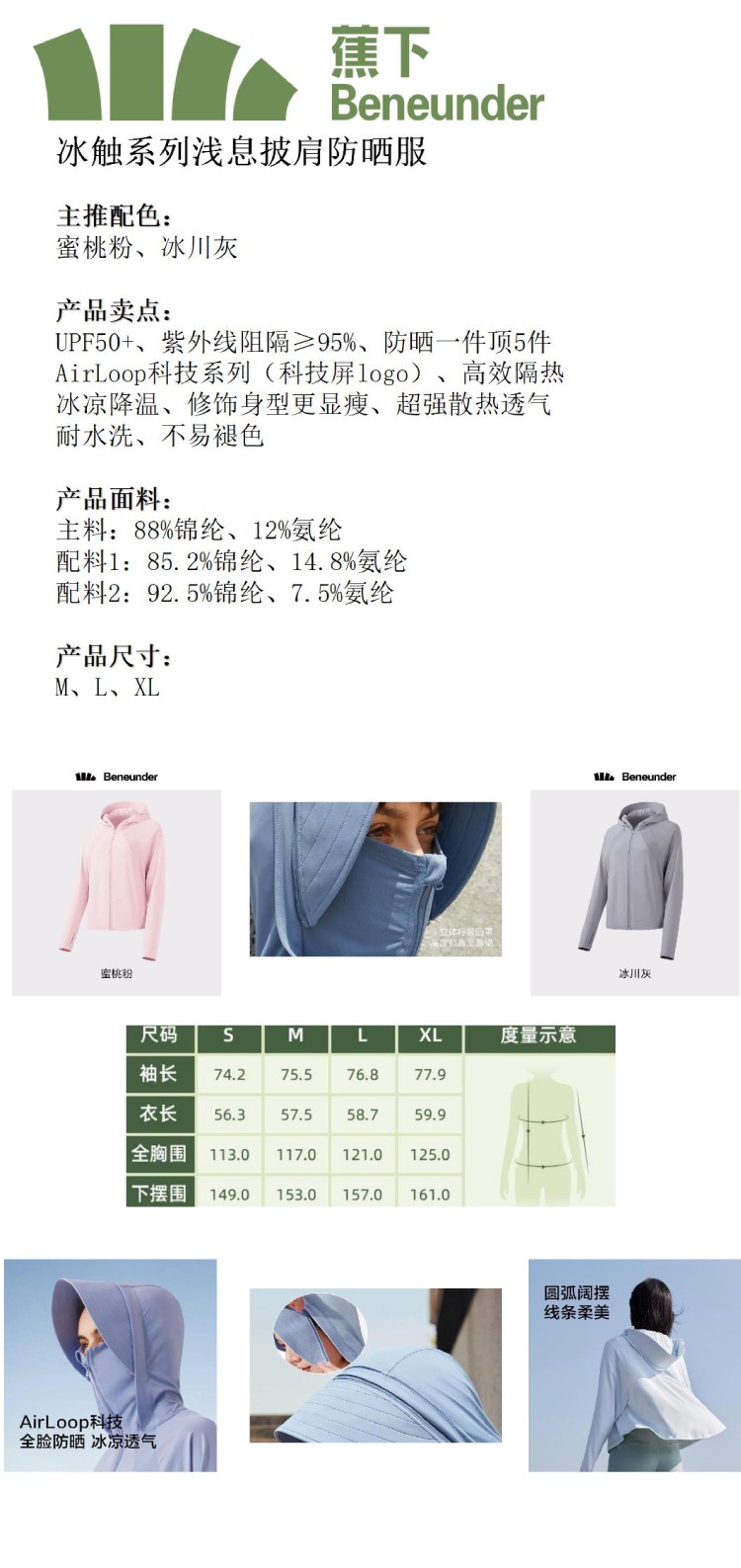 蕉下(beneunder) 冰触系列 浅息披肩防晒服 M/L/XL可备注(单位:件) 颜色随机