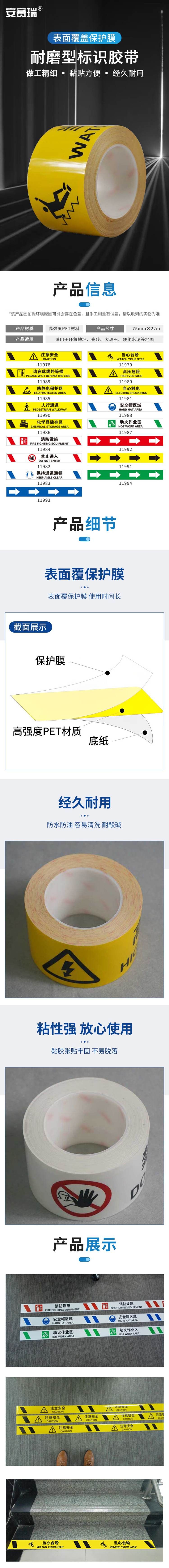 安赛瑞 11990 标识胶带 人行通道 75mm*22m(单位:卷)