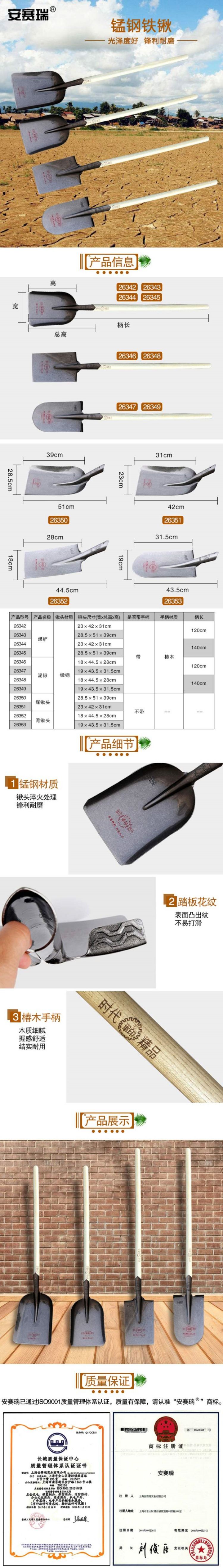 安赛瑞 26344 大方锹煤铲 锹头23*42*31cm+椿木柄1.4米(单位:把)