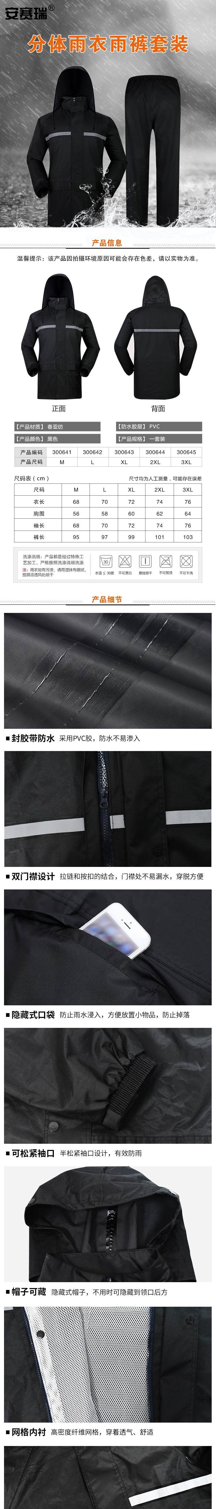 安赛瑞 300642 分体式雨衣雨裤套装 L码(单位:套) 黑色