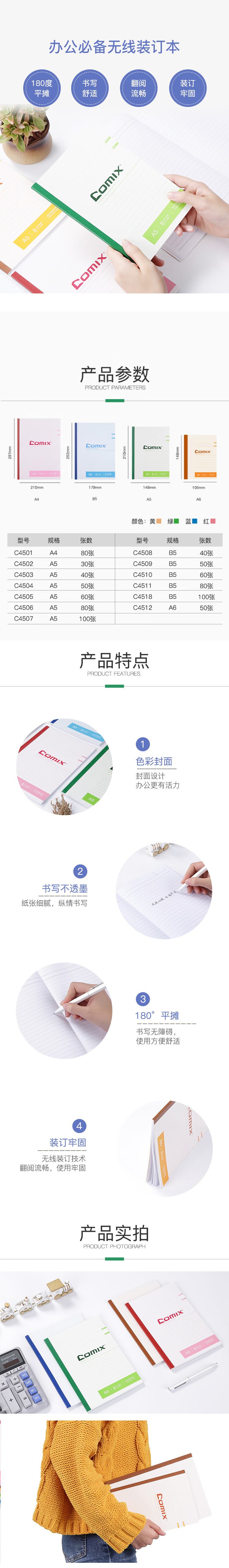 齐心(Comix) C4510 无线装订本 B5 60张 6本/包 (单位:包) 混色