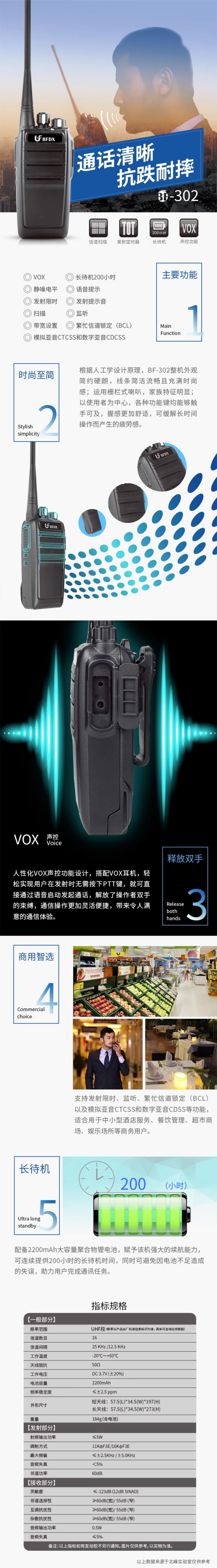 北峰(BFDX) BF-302 短天线对讲机 57.5*34.5*197mm(单位:台) 黑色