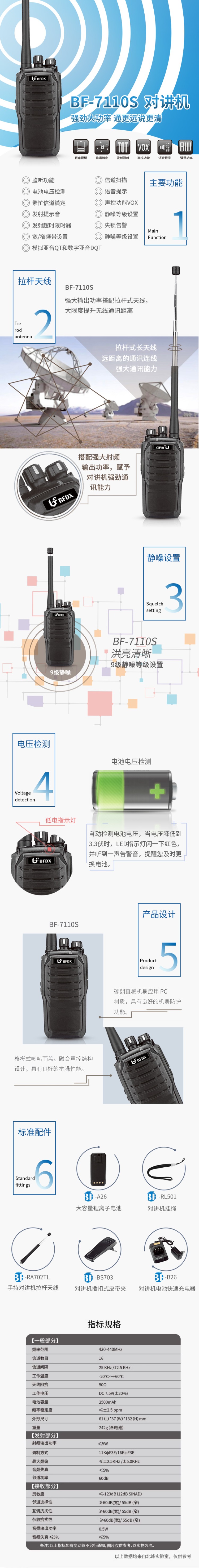 北峰(BFDX) BF-7110S 大功率对讲机 5W(单位:台) 黑色