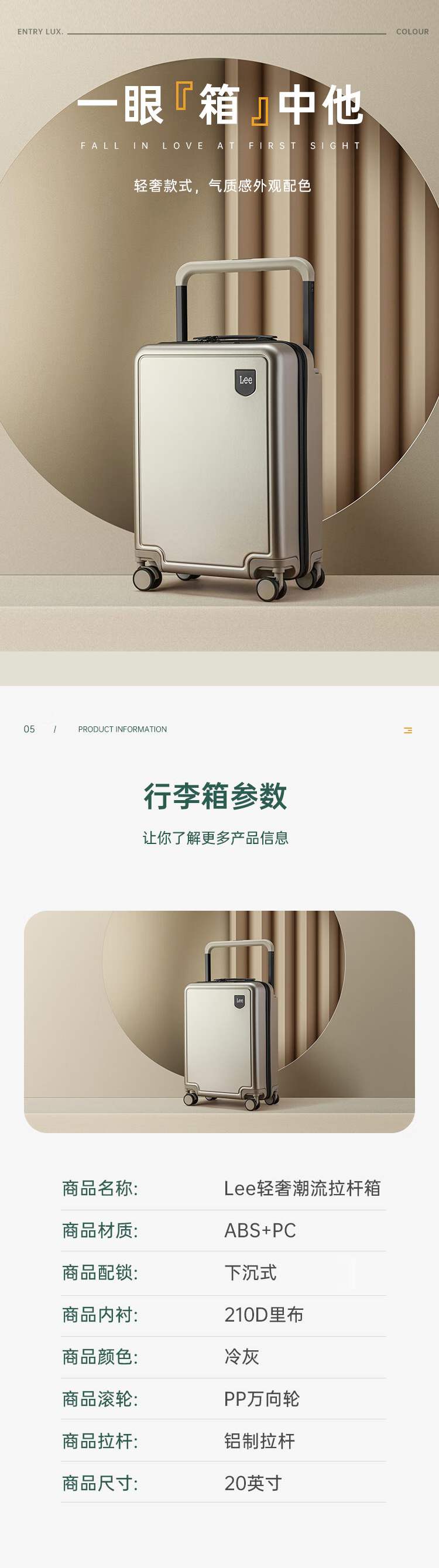 Lee LE227001M 轻奢潮流拉杆箱 20英寸(单位:个)