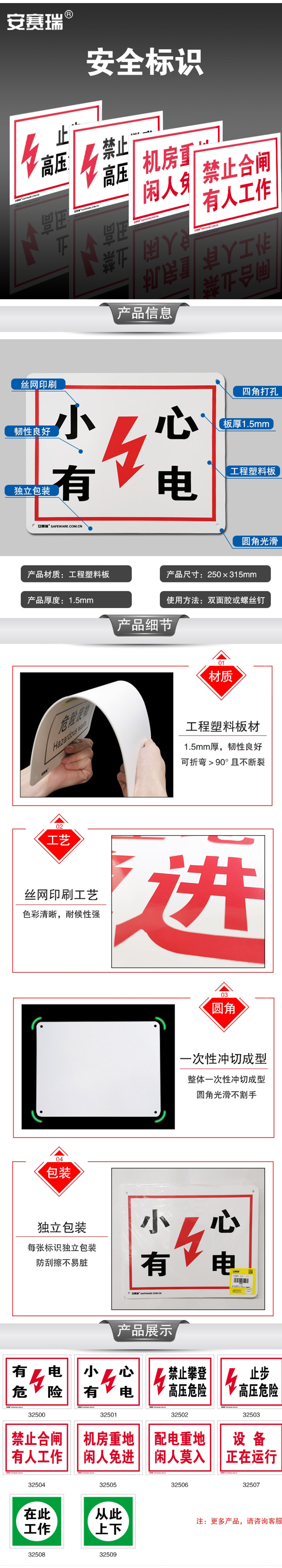安赛瑞 32504 安全标识牌 禁止合闸 有人工作 250*315mm(单位:张) 塑料板