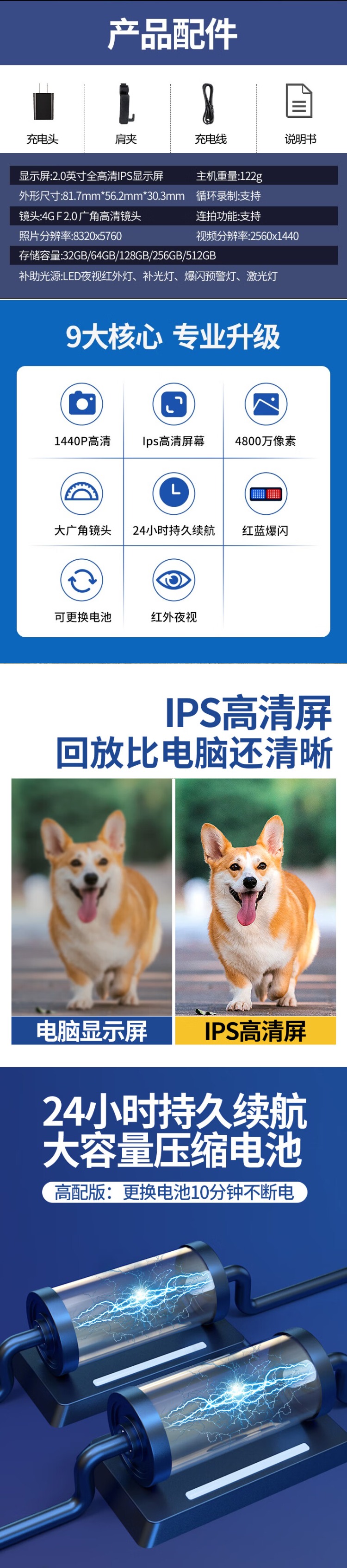 商品名称 4800万像素双电红蓝爆闪 执法记录仪 标配