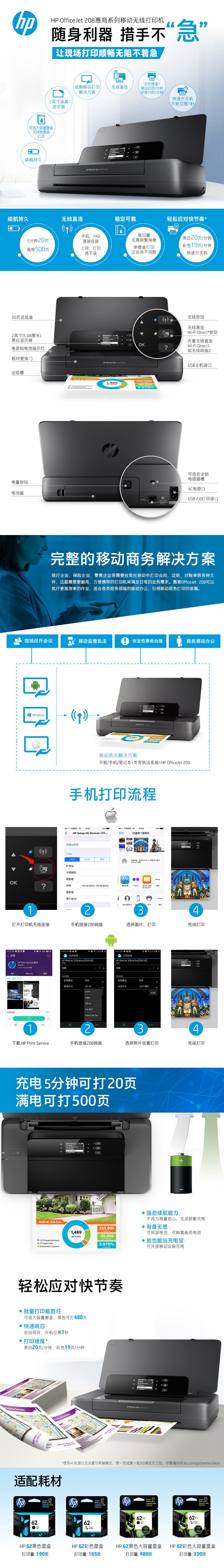 惠普(HP) OfficeJet 208 Mobile 彩色喷墨便携式打印机 A4(单位:台) 一年原厂上门服务 黑色
