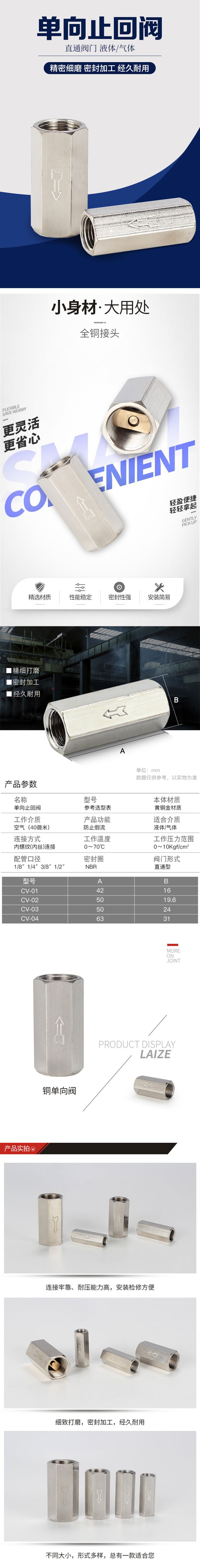 海斯迪克 gnjz-910 单向止回阀 CV-1分(单位:个) 6个起拍