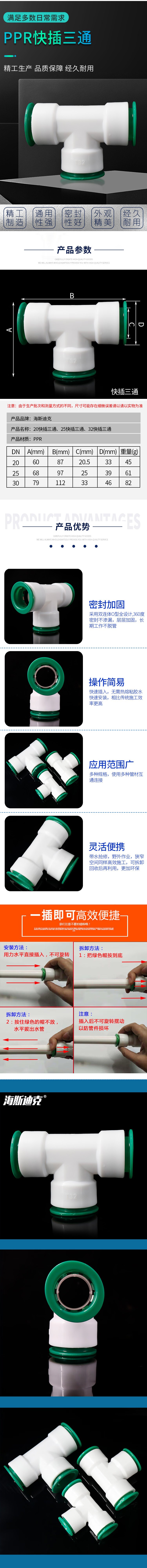 海斯迪克 HZL-22 免热熔PPR快速活接头管件 32快插三通(单位:个) 2个起拍