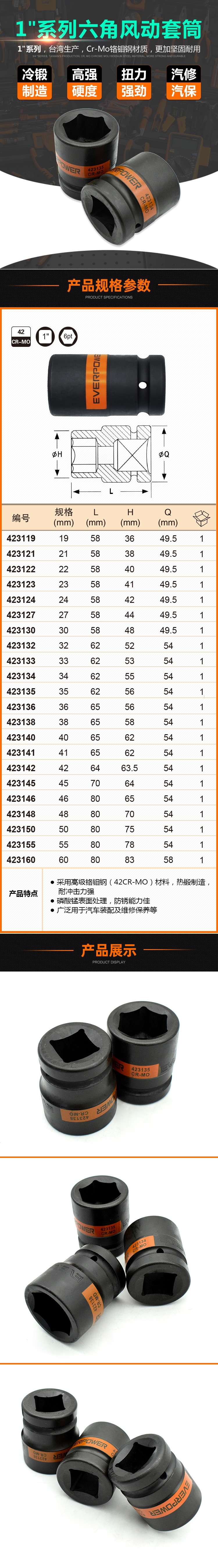 艾威博尔(EVER POWER) 423119 1"系列六角风动套筒 19mm(单位:个)