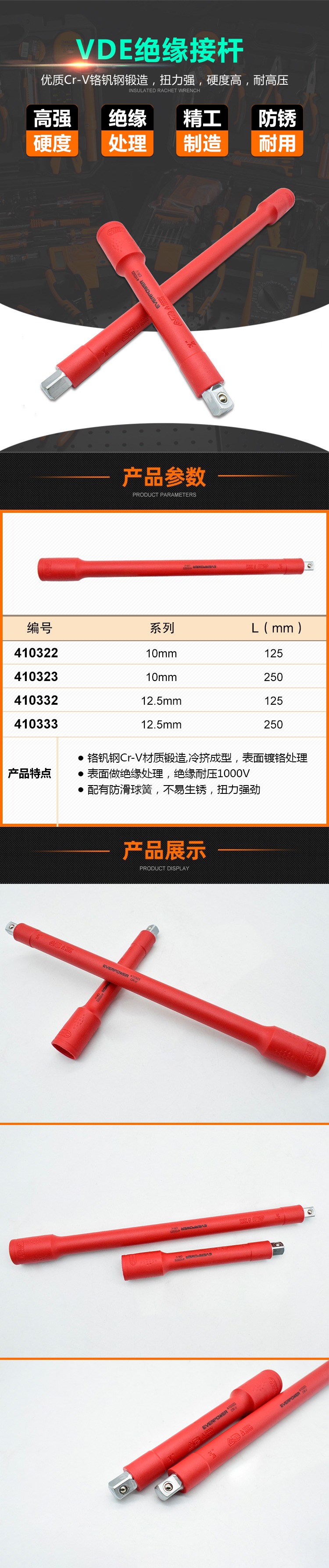 商品名称 VDE绝缘接杆3/8