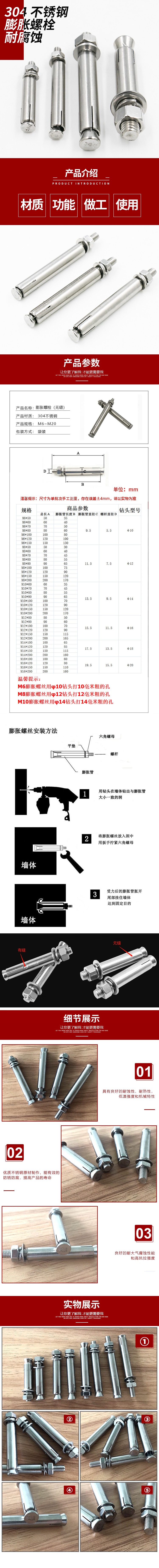 海斯迪克 HK-07 304不锈钢膨胀螺栓 无缝 M6*150 20个/组(单位:组)
