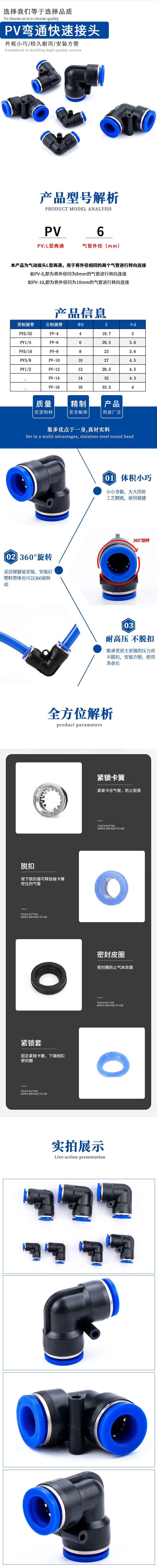商品名称 L型二通气管接头 直角弯头PV快速插接头气动元件