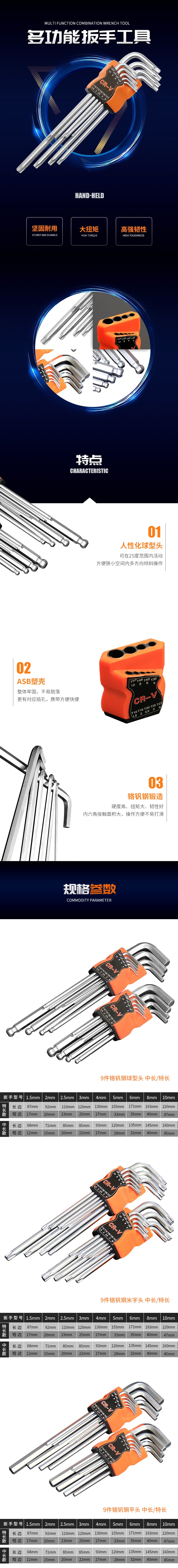 商品名称 扳手套装内六角扳手 内6角螺丝刀 平头中长款