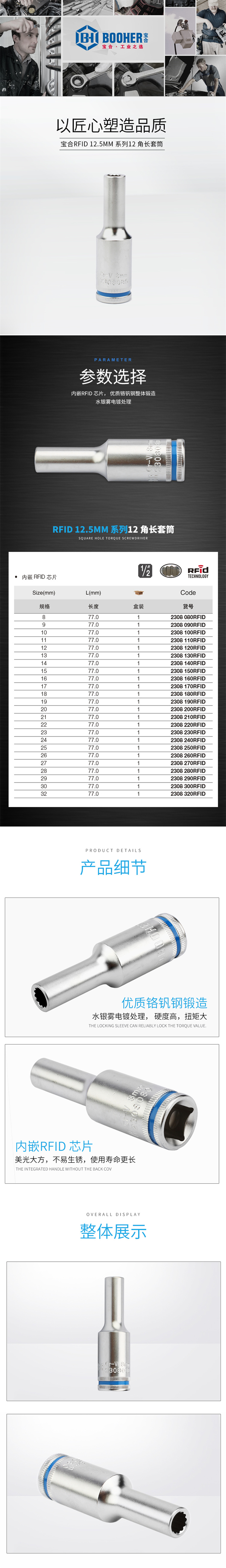 宝合(BOOHER) 2308250RFID RFID12.5MM系列12角长套筒 25MM(单位:个)
