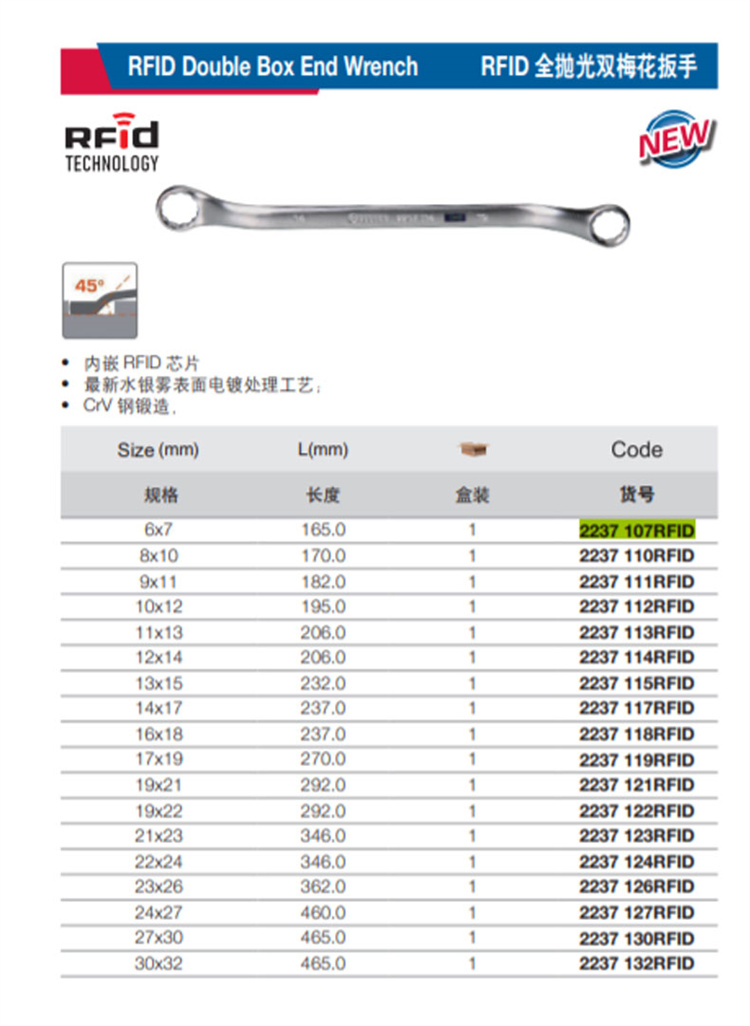 宝合(BOOHER) 2237132RFID RFID全抛光双梅花扳手 30x32MM(单位:把)