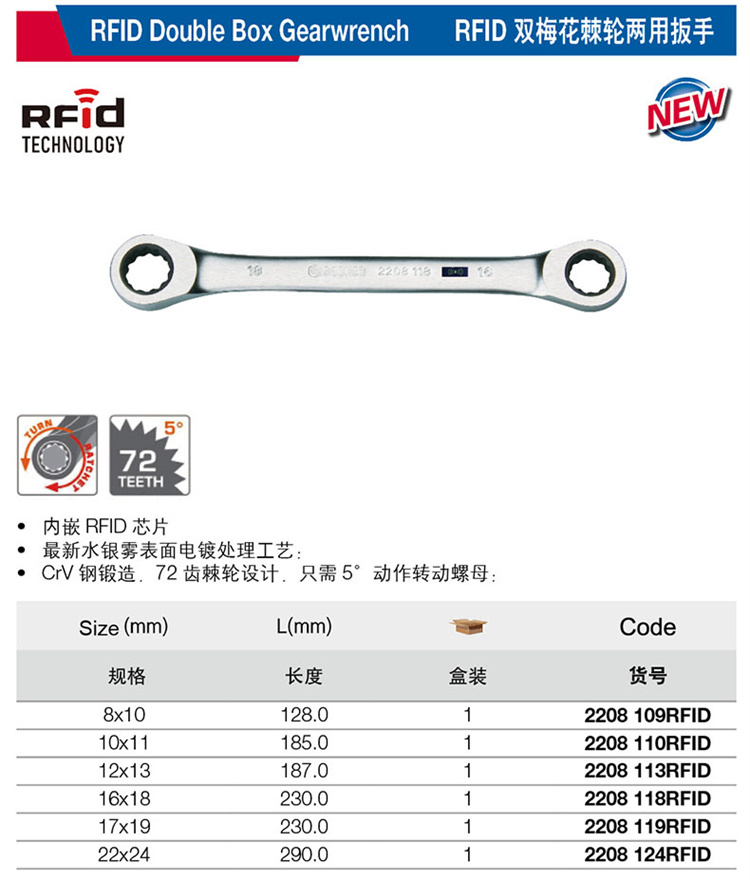 商品名称 RFID双梅花棘轮两用扳手