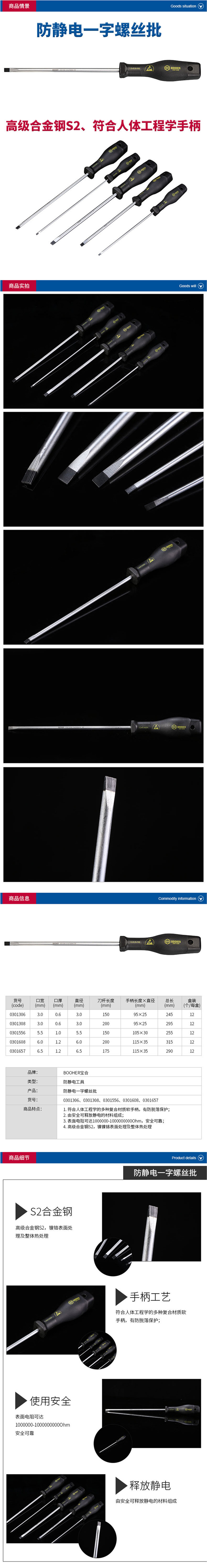 宝合(BOOHER) 0301608 防静电一字螺丝批 6x200MM(单位:支)