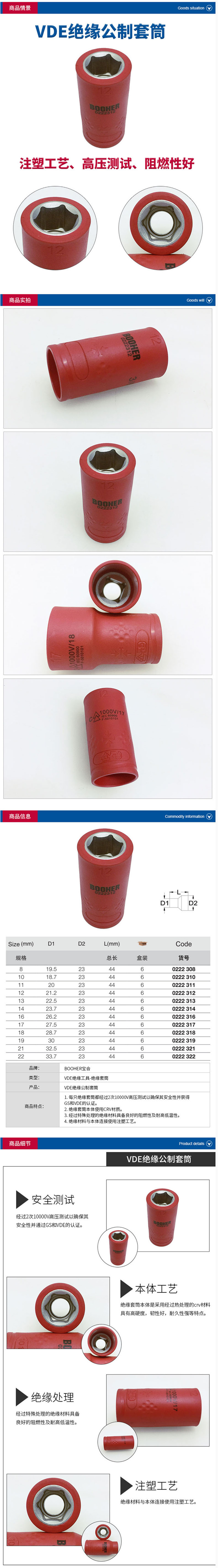 宝合(BOOHER) 0222312 3/8"绝缘公制套筒 12MM(单位:个)