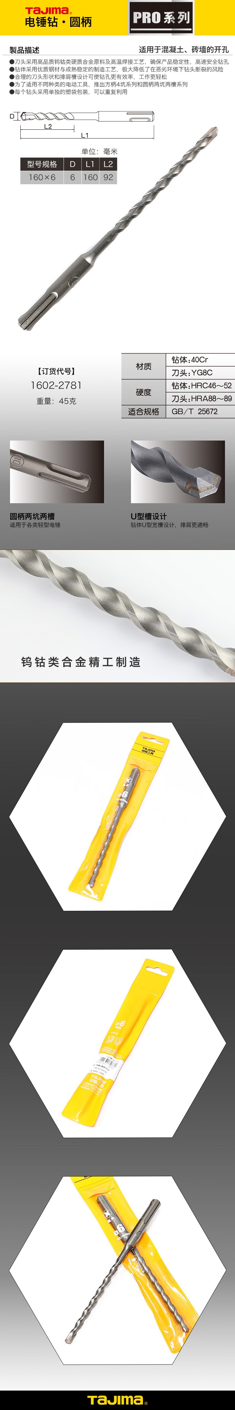 田岛(TaJIma) 1602-2781 电锤钻圆柄 6*160mm(单位:支)