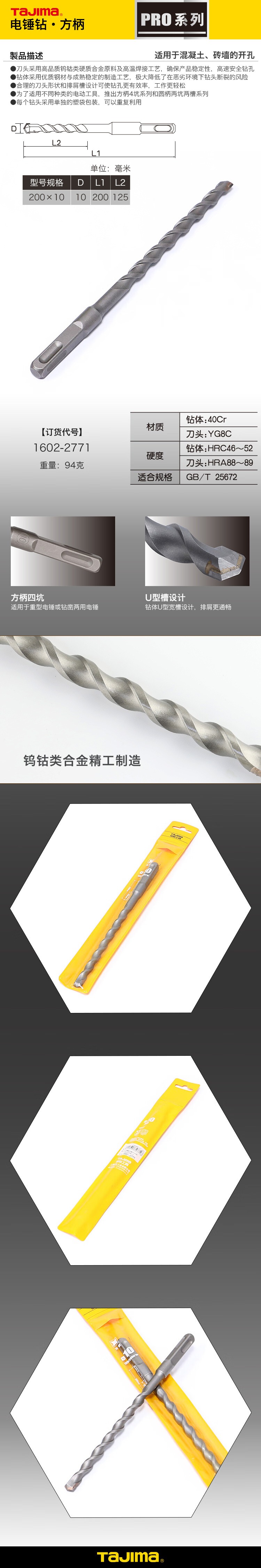 田岛(TaJIma) 1602-2771 电锤钻方柄 10*200mm(单位:支)