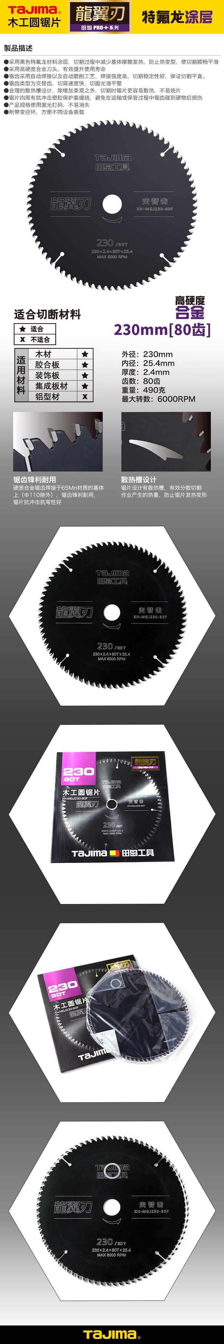田岛(TaJIma) 1605-2718 龙翼刃木工圆锯片 230*2.4*80T*25.4(单位:片)