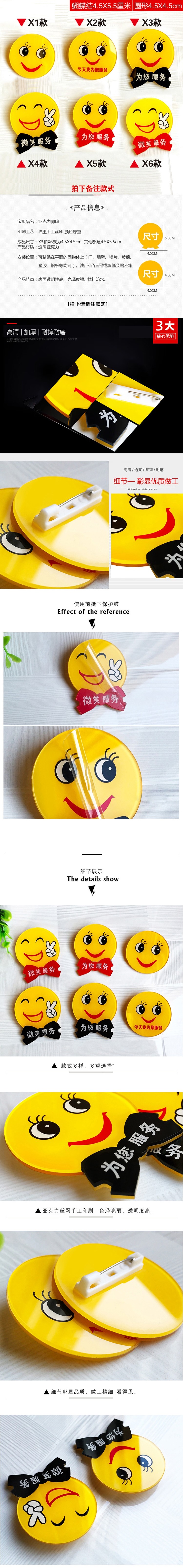 商品名称 圆形亚克力胸牌 ×6款微笑服务