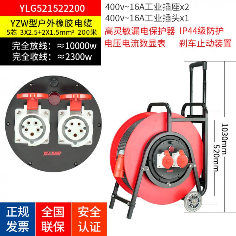 野狼(yelang) YLG521522200 电缆盘 3*2.5+2*1.5*200米(单位:个) 红色
