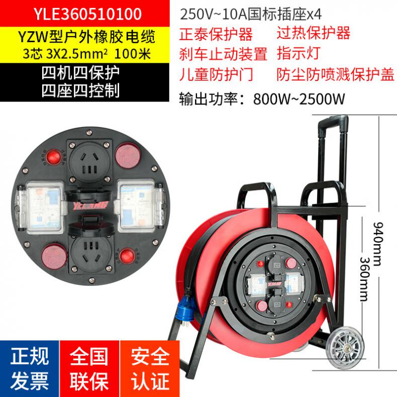 野狼(yelang) YLE360510100 电缆盘 3*2.5*100米(单位:个) 红色