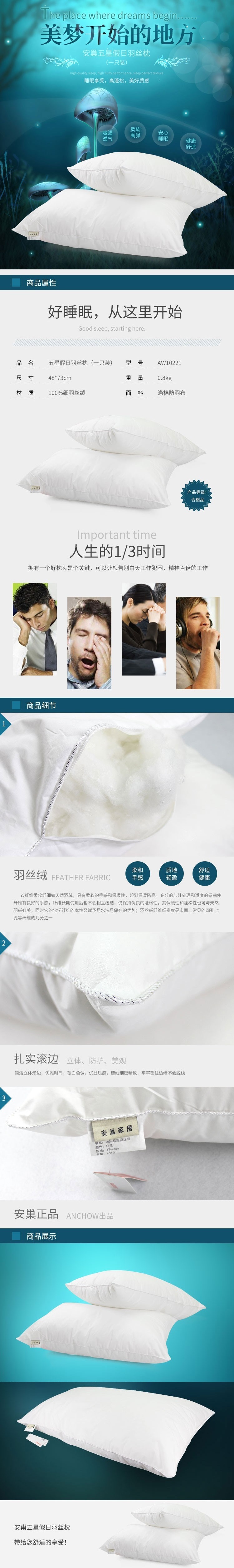 安巢家居(ANCHOW) AW10221 五星假日羽丝枕 48*73cm(单位:个)