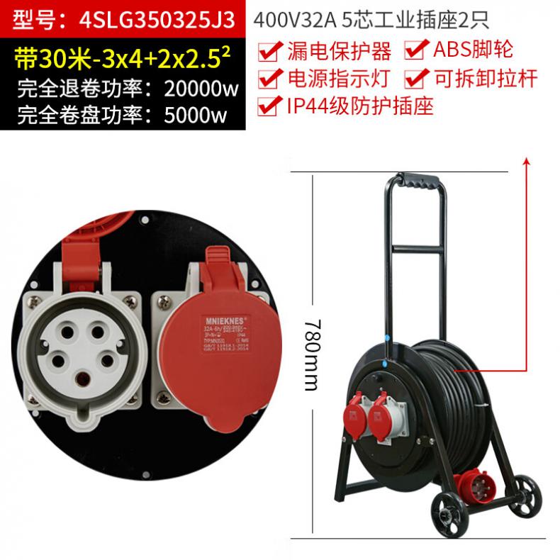守护者(SHOUHUZHE) 4SLG350325J3 移动电缆盘电源盘 380V~400V-3*4mm²+2*2.5mm²*30米(单位:个) 2位32A5孔 黑色
