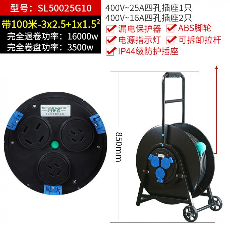 守护者(SHOUHUZHE) SL50025G10 移动电缆盘电源盘 380V~400V-3*2.5mm²+1*1.5mm²*100米(单位:个) 1位25A4孔+2位16A四孔 黑色