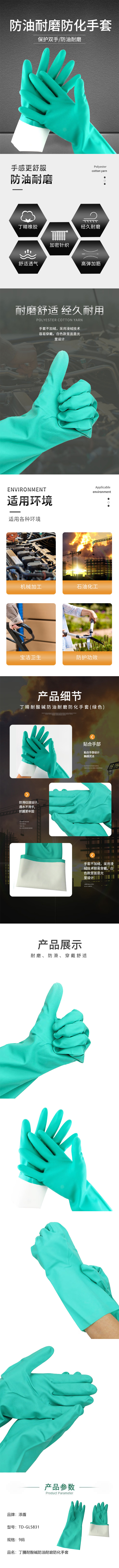 添盾 TD-GL5831 丁腈耐酸碱防油耐磨防化手套 (单位:双) 绿色