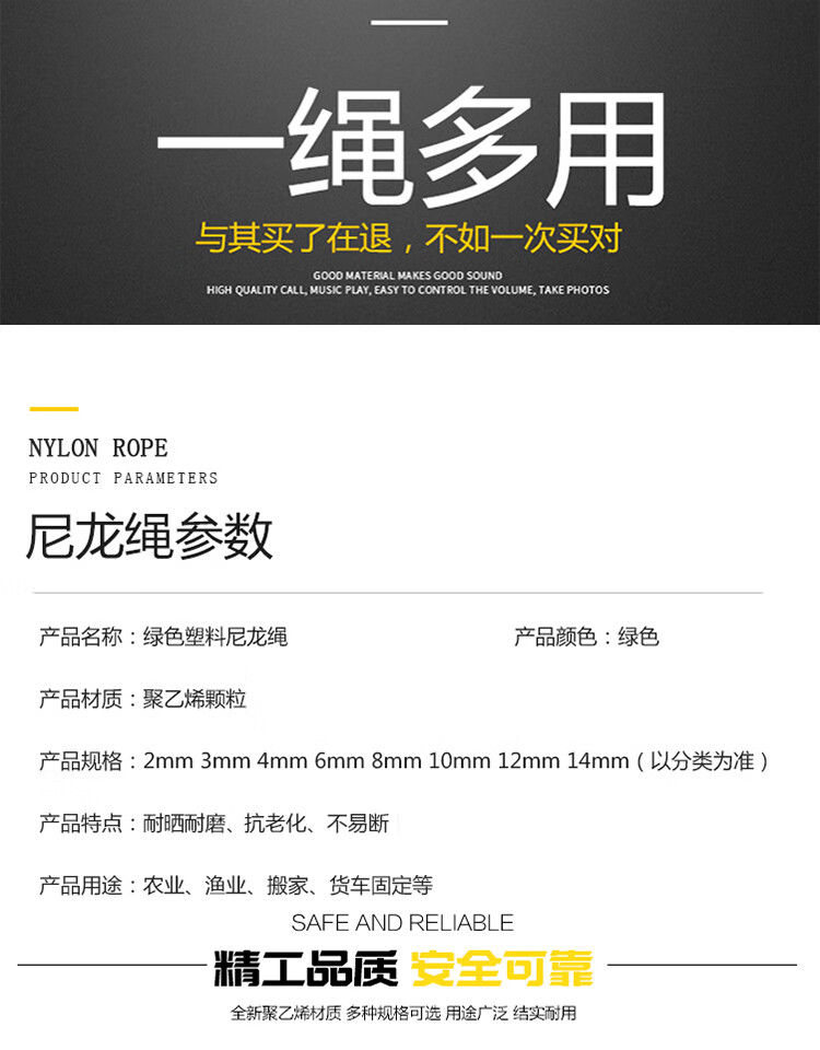鸣固 塑料绳耐磨 尼龙绳 (单位:米) 绿色
