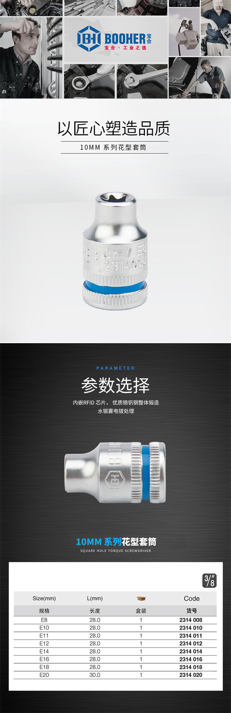 宝合(BOOHER) 2314018 10MM系列花型套筒 E18(单位:个)