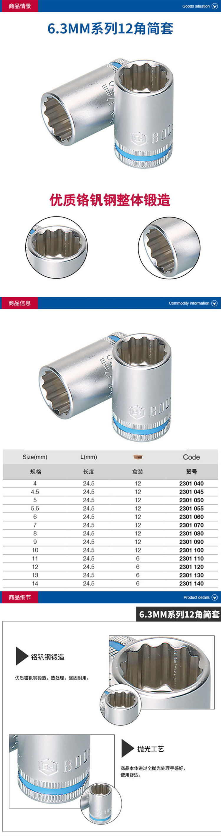宝合(BOOHER) 2301050 6.3MM系列12角套筒 5MM(单位:个)