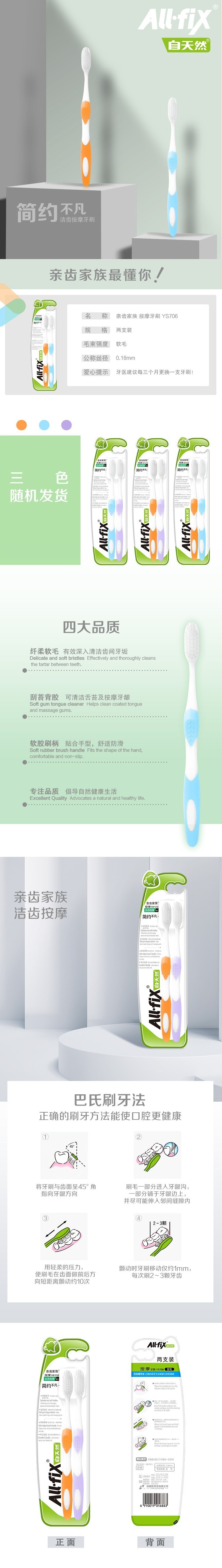 纳爱斯 YS706 亲齿家族按摩牙刷 2支/组(单位:组)