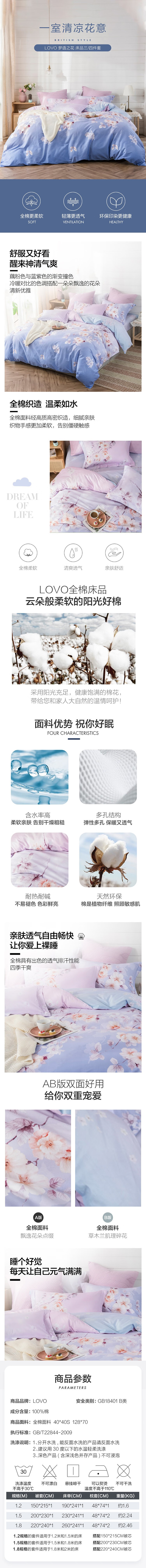 LOVO 梦语之花 家纺四件套 200*230cm(单位:套)