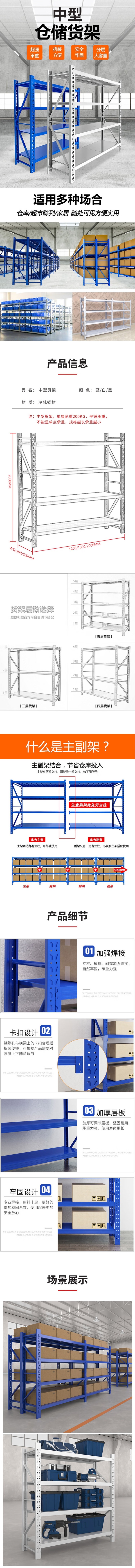 企诺 QNGlA102-4b1250B 仓储货架中型 副架 1200*500*2000mm(单位:个) 默认蓝色